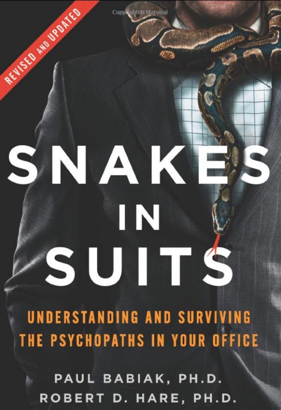 Snakes in Suits, when psychopaths go to work (2006) by Robert Hare and Paul Babiak