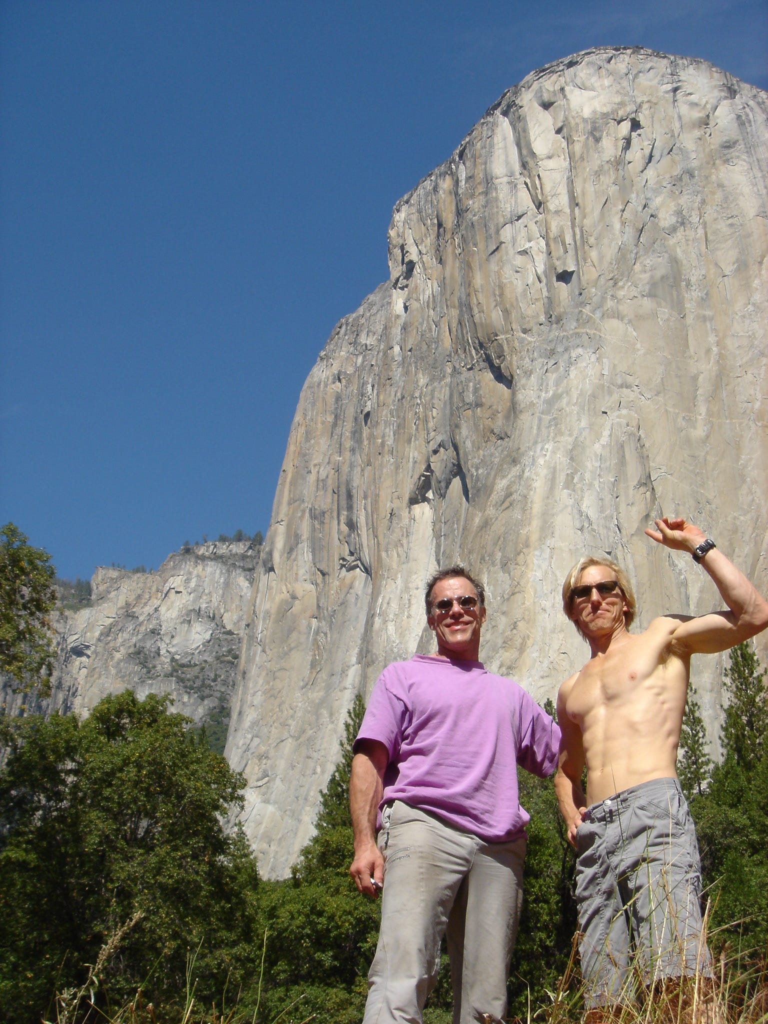 I then slid back down the rope using a “Grigri” friction device on the left-hand strand. If I had used the right-hand rope, I would have died right then. After I got to the bottom, I climbed back up the rock using the rope as a safety but without putting my weight on it. When I was once more at the top, I realized that the knot was not secure and that I could have killed myself. I was shaken but had to presence of mind to tie in and take the photo. But since I didn’t slip, I thought, “No harm, no foul.” I fixed it and carried on.