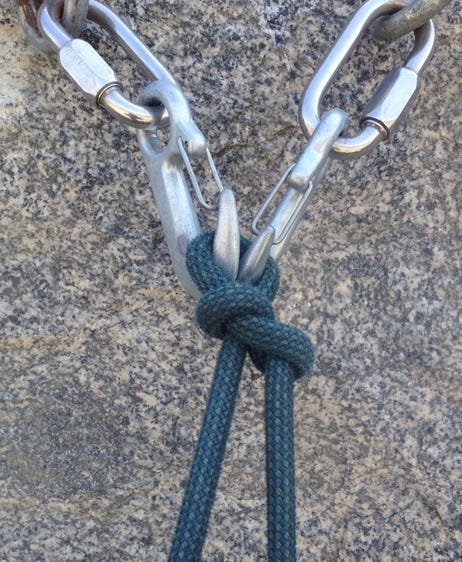 I once climbed to the top of a 100-foot rock using a rope but without a “belayer” holding it for me (I was “rope soloing.” These techniques are beyond the scope of this article.) I then tied a knot at the anchor that I had used thousands of times before. I made a mistake: