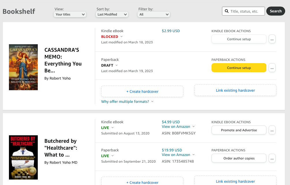 Butchered took three years to write, is a minor viral hit, and is the critical background to today's dystopia. Hormone Secrets is required reading if you are over 50 and want to live your best life. Each book has over 500 linked references. You may find Secrets more credible because Amazon initially blocked it as well. Their Pharma masters said I was promoting "unproven therapies," so I had to change the subtitle.