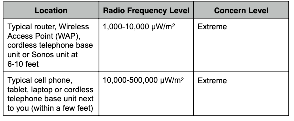 Note: according to Dr. Mercola, these are localized to only about twelve inches or less from the source and decrease dramatically at distances further than this.