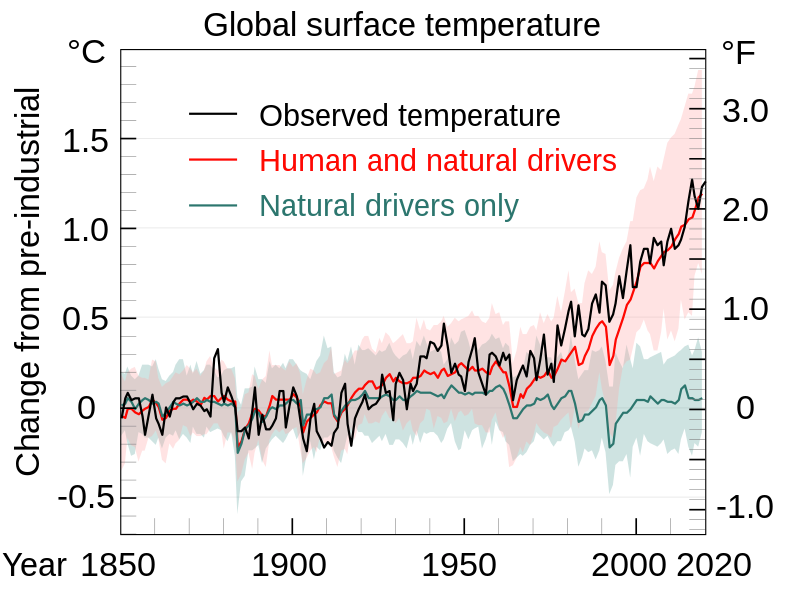 The temperature increase over the past 50 years is distinctly more rapid (and) not due to natural causes… (this is) caused by the emission of greenhouse gasses, mostly CO2 and methane. Burning fossil fuels… creates most of these emissions… Agriculture, steelmaking, cement production, and forest loss are additional sources… Increased warming in the Arctic has contributed to… melting permafrost, glacial retreat, and sea ice loss… Making deep cuts in emissions will require switching away from burning fossil fuels…