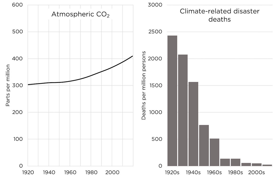 I learned that the widely-respected IPCC does not acknowledge the massive decrease in climate-related disaster deaths driven by fossil fuels. This is as disreputable as a panel on polio that doesn't acknowledge the massive decrease in polio deaths driven by the polio vaccine.